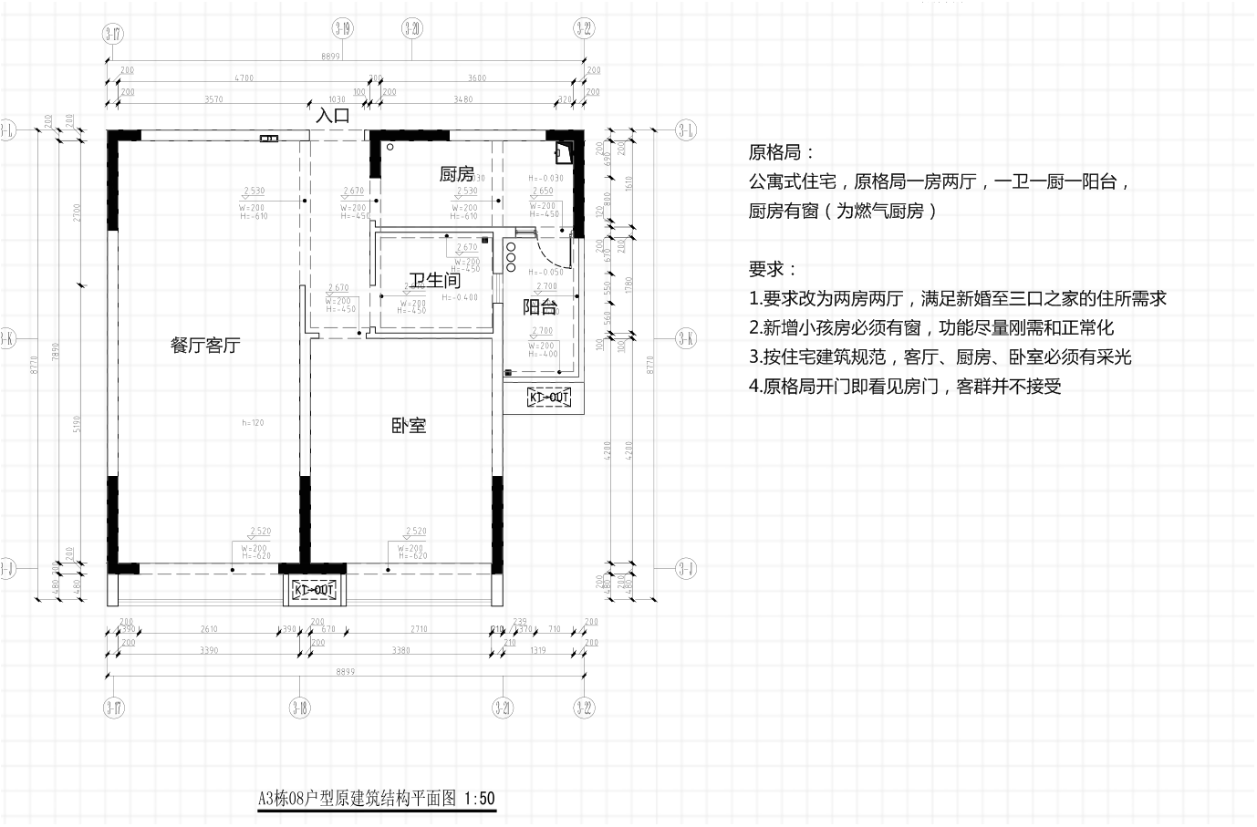 3.按住宅建筑规范,客厅、厨房、卧室必须有采光